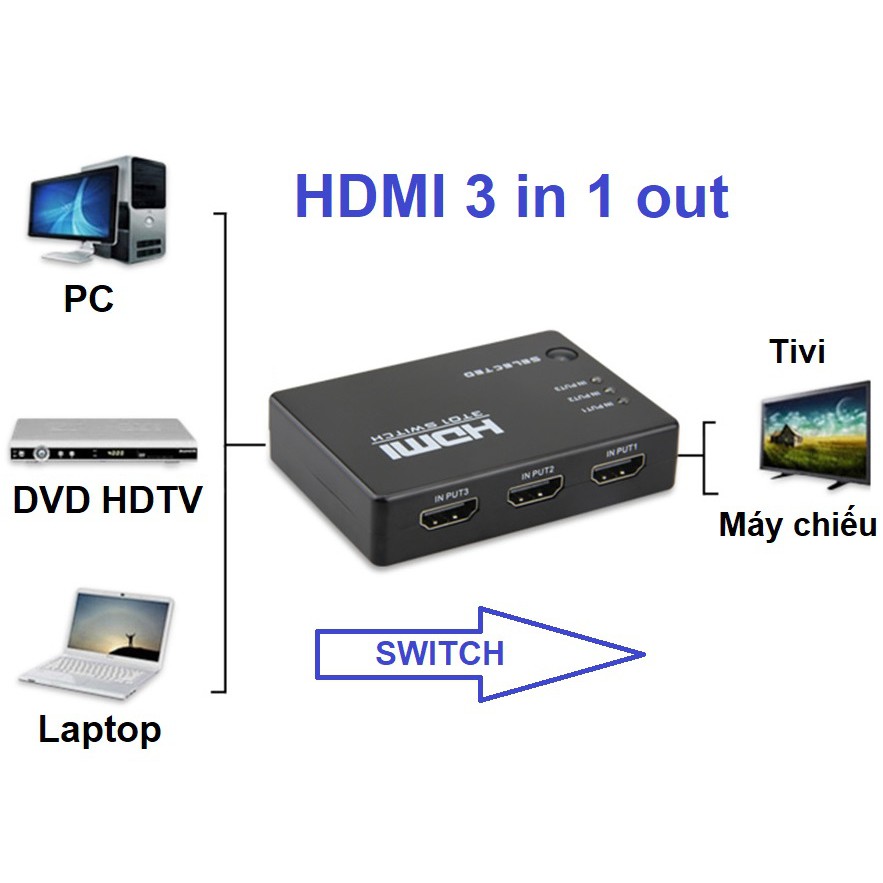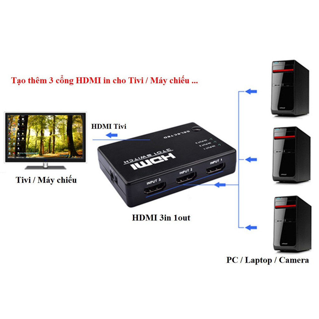 Thiết Bị Điện Gia Dụng > Máy chiếu & Phụ kiện > Máy chiếu & Màn hình chiếu || Bộ gộp HDMI 3 vào 1 cho Tivi, Máy chiếuCòn hàng