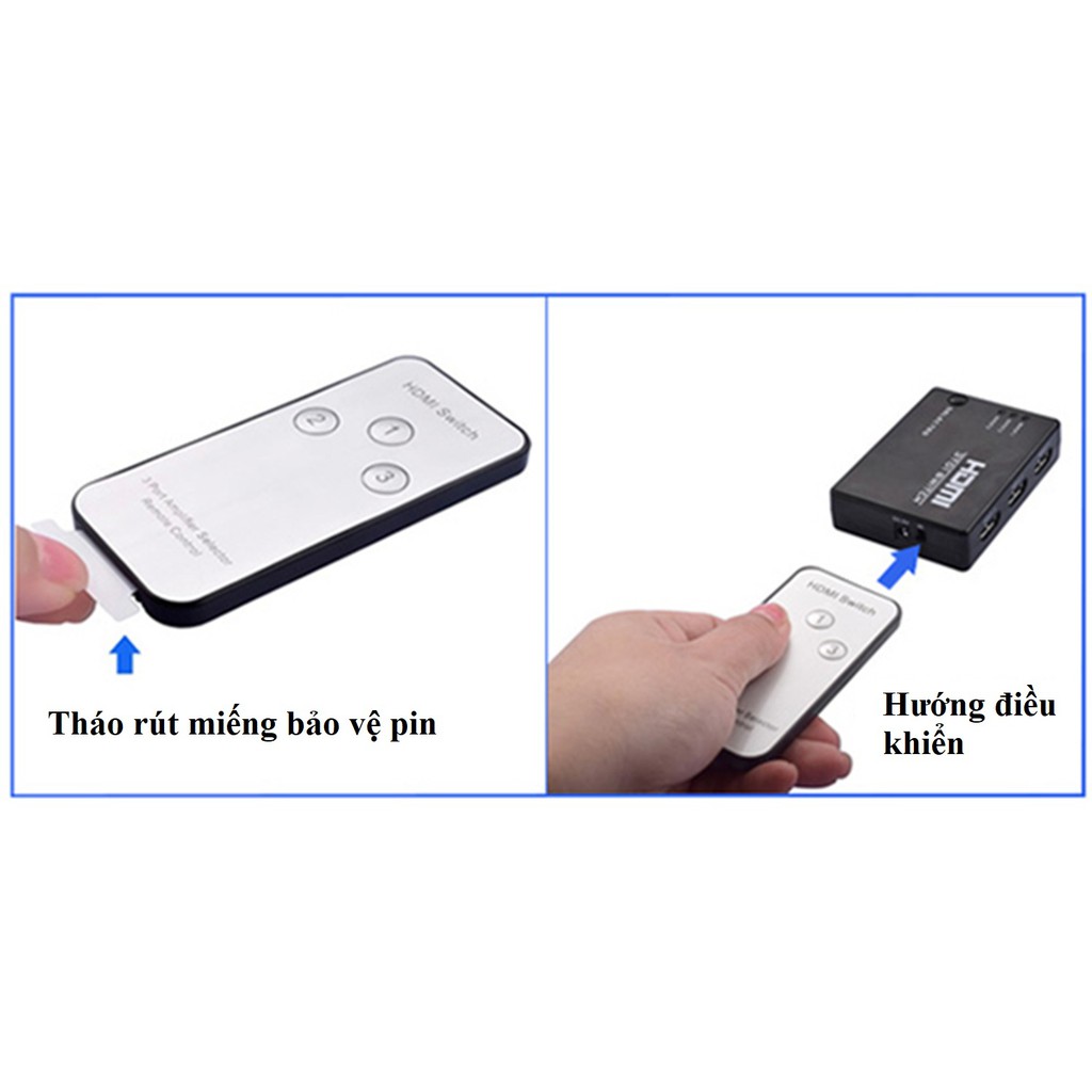Điều khiển hoạt động: kết hợp phím bấm thủ công và điều khiển từ xa Bộ gộp HDMI 3 vào 1 cho Tivi, Máy chiếu 1