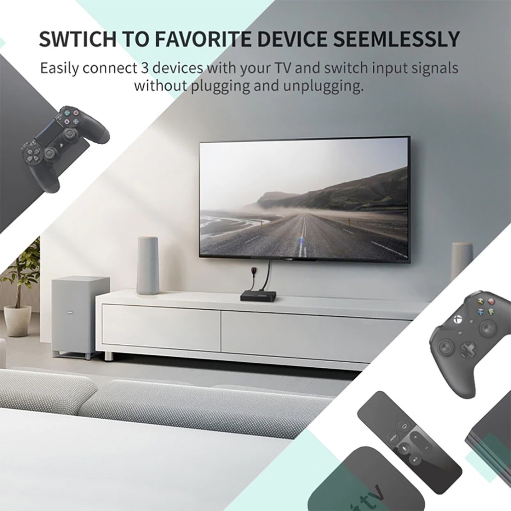 -Tính năng: Kết nối dùng chung 1 màn hình cho 3 thiết bị phát HDMI.