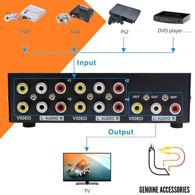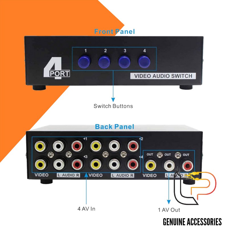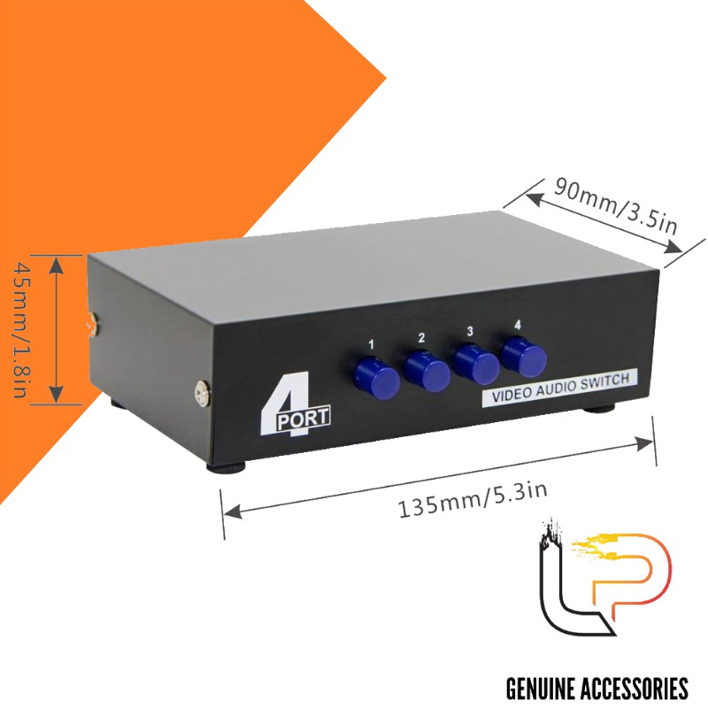 Bộ chọn công cụ chuyển đổi video âm thanh AV 4 chiều cho XBOX DVD PS3 PS3 Wii Box cho các đầu nối RCA màu vàng-trắng-đỏ của TVThiết kế cơ khí, chuyển đổi bằng nút bấm đơn giản