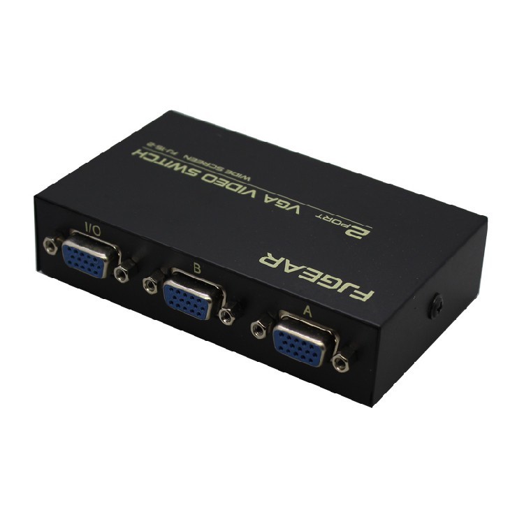 Bộ gộp VGA 2 vào 1 ra hỗ trợ chuyển mạch tín hiệuBộ gộp VGA 2 vào 1 ra là thiết bị hỗ trợ chuyển mạch tín hiệu từ 2 nguồn phát VGA vào chung 1 màn hình, máy chiếu thông qua cổng VGA, hỗ trợ gộp tín hiệu với khả năng chọn nguồn phát thông qua nút bấm chọn kênh trên thiết bị