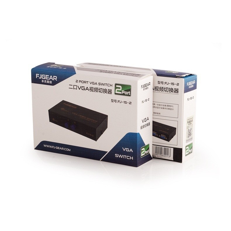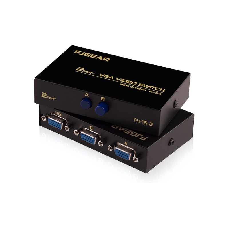 Bộ Gộp VGA 2 Vào 1 Ra FJGEARBộ gộp VGA 2 vào 1 ra là thiết bị hỗ trợ chuyển mạch tín hiệu từ 2 nguồn phát VGA vào chung 1 màn hình, máy chiếu thông qua cổng VGA, hỗ trợ gộp tín hiệu với khả năng chọn nguồn phát thông qua nút bấm chọn kênh trên thiết bị