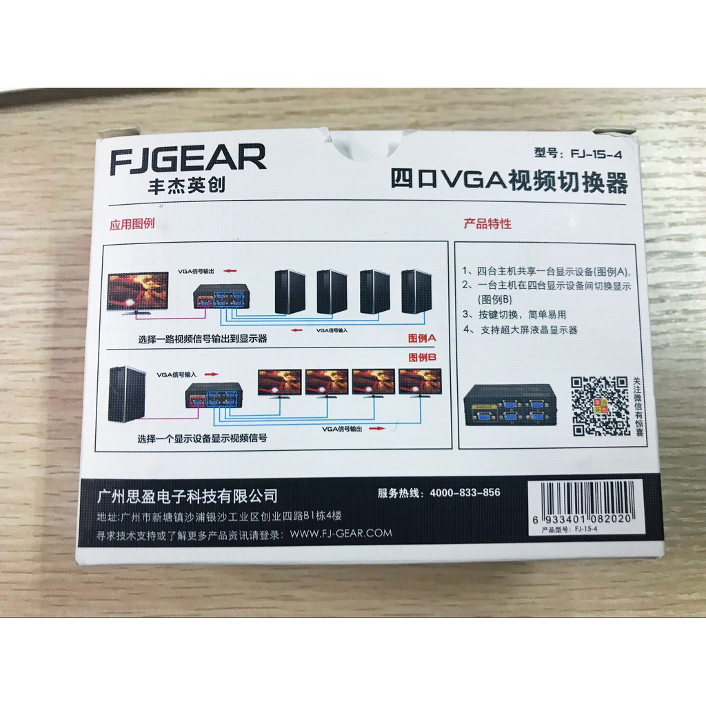 Bộ gộp VGA 4 vào 1 ra (4 Port VGA Video Switch) FJGEAR - Gộp 4 máy tính vào 1 màn hình TV, máy chiếu