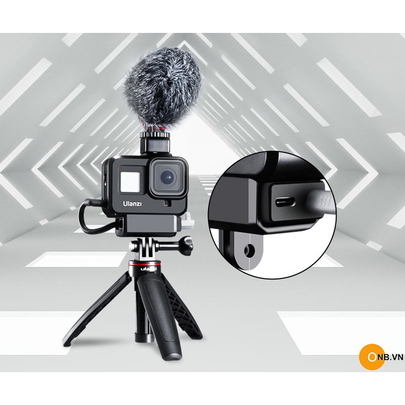 Gopro 8 - Ulanzi G8-9 Khung nhựa bảo vệ Vlog mẫu mới 2020. Ulanzi vừa cho ra mắt thêm phiên bản Vlog cho Gopro 8 với giá thành rẻ hơn dùng chất liệu nhựa ABS cho khách hàng nhu cầu tìm khung rẻ phù hợp giá tiền mà vẫn đầy đủ tính năng như khung kim loại G8-5Chất liệu nhựa ABS cứng cáp, có cold shoes gắn thêm đèn led mini, kèm adaper phi 52mm gắn filter UV, CPL, ND, kèm nắp đậy bảo vệ lens.