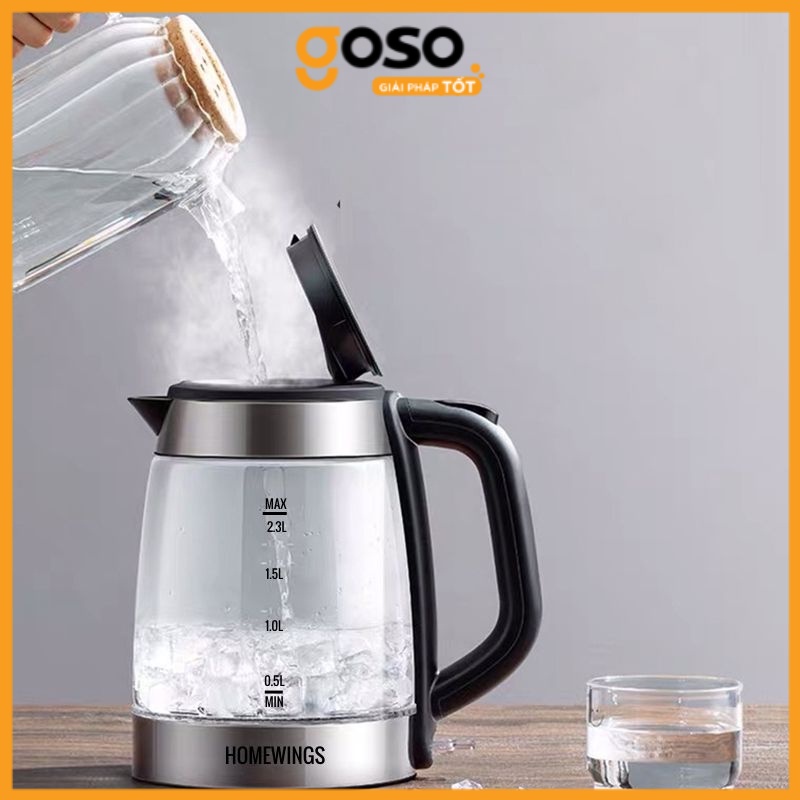 [GOSO] Ấm Siêu Tốc HOMEWING Thủy Tinh 2,3L, Ấm Điện Đun Nước Cao Cấp 1800W