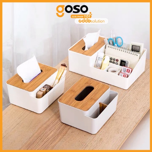 [GOSO] Hộp Đựng Giấy Ăn NẮP GỖ Có Ngăn Để Đồ Đa Năng Tiện Lợi