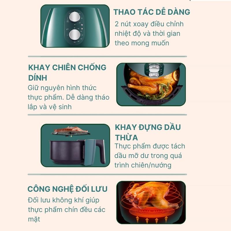 Khi hoạt động, nồi chiên không sản sinh khói hay bất cứ chất thải độc hại nào ra môi trường, an toàn cho sức khoẻ khách hàng.