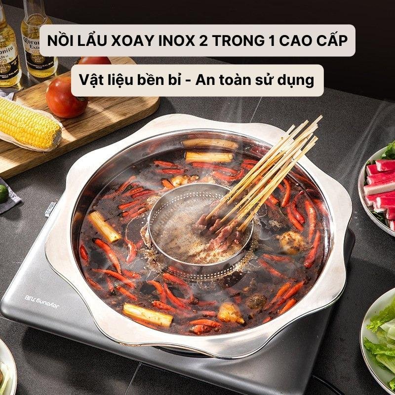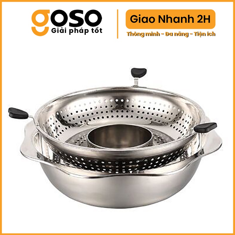 [GOSO] Nồi Lẩu Inox Xoay 2 Tầng Hàn Quốc, Nồi Lẩu Đa Năng 2 Ngăn Dùng Được Cả Bếp Từ Và Bếp Gas