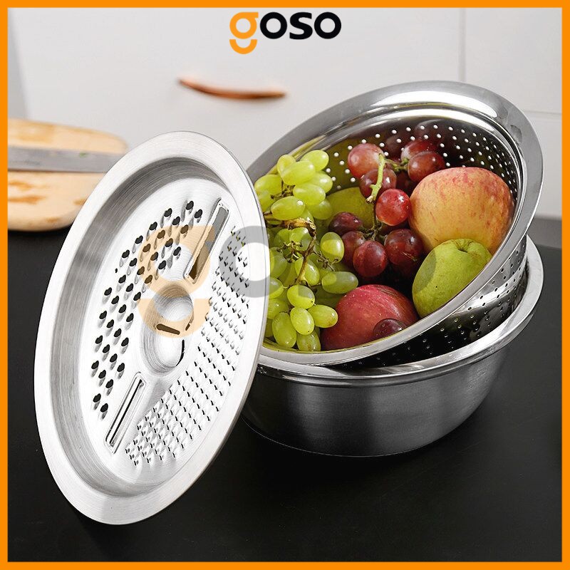 [GOSO] Rổ Inox Nạo Củ Quả Đa Năng 3 trong 1