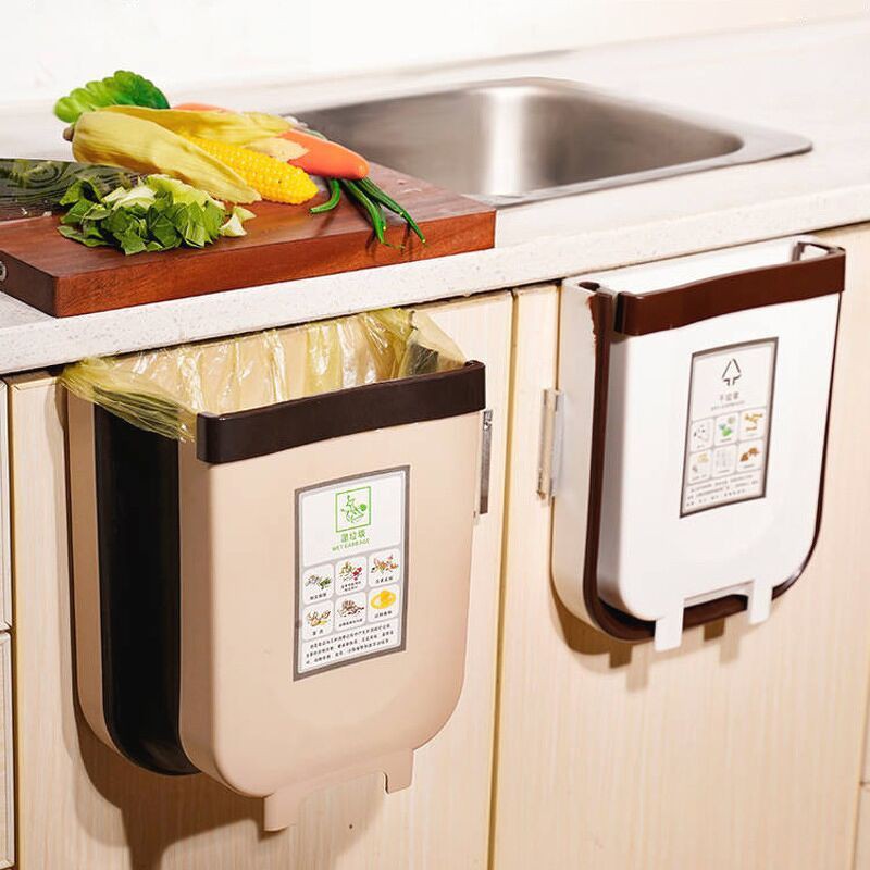 Thùng rác thông minh có thể treo vào tủ bếp, thuận tiện cho việc bỏ rác