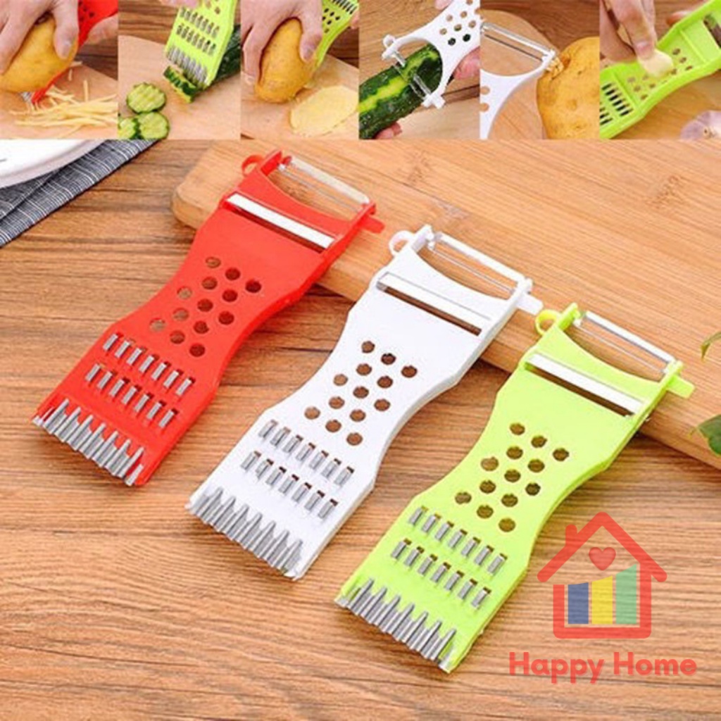 - Gọt củ quả, nạo rau củ quả, bào sợi cà rốt đa năng 3 trong 1 Happy Home thiết kế 3 trong 1 cho ba chức năng, có thể là gọt vỏ, dụng cụ bào sợi, thái mỏng