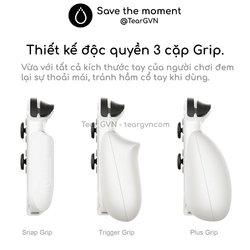 -Các cặp Grip có thể thay thế nhau để phù hợp kích cỡ tay cũng như Game đang chơi để thay đổi phù hợp.