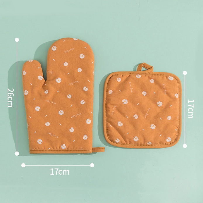 - 1 Set gồm: 1 găng tay và 1 miếng lót tay- Chất liệu: vải cotton và polyster