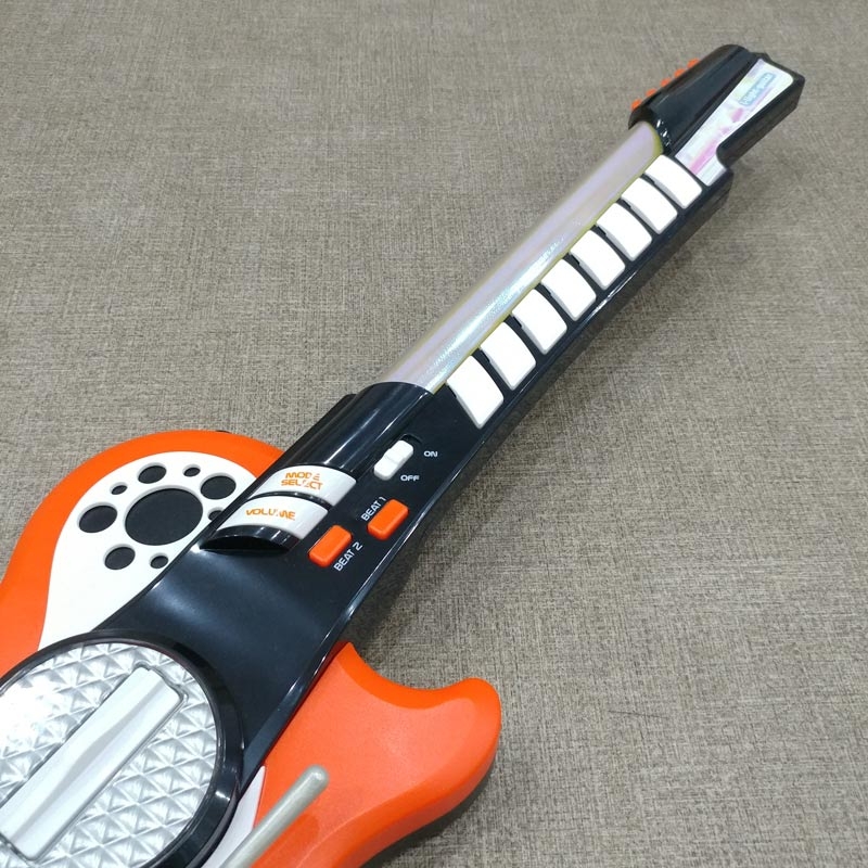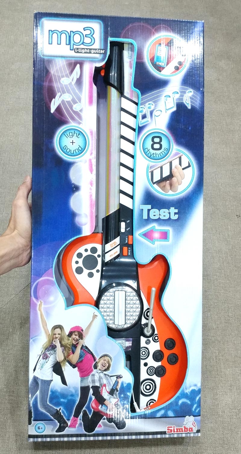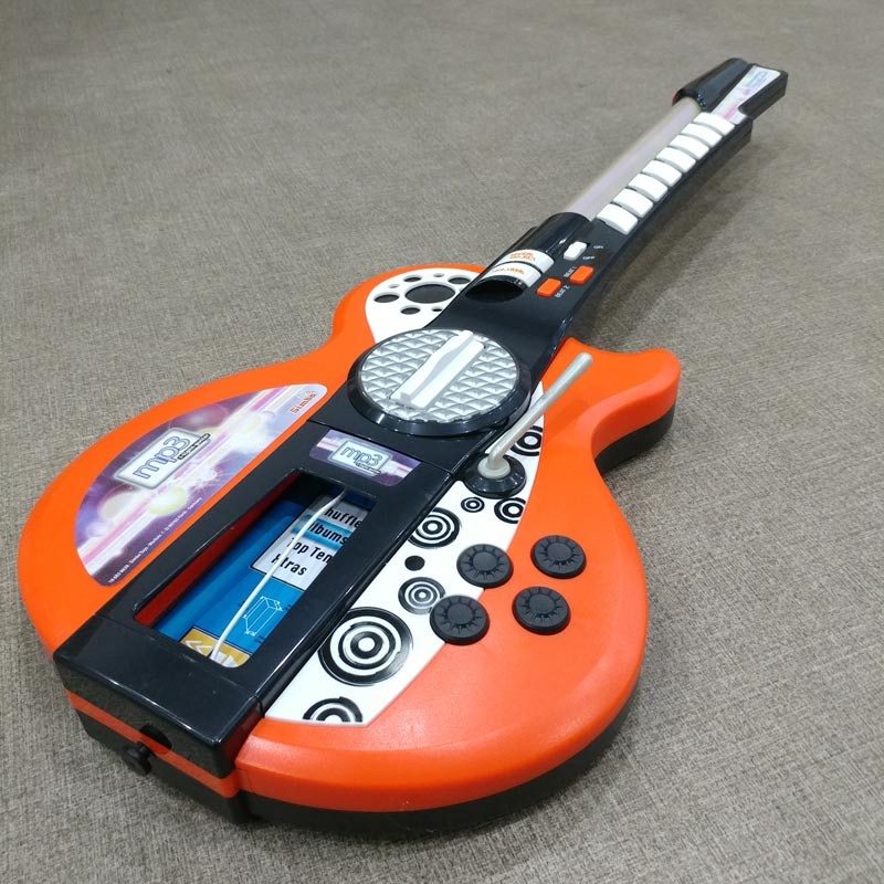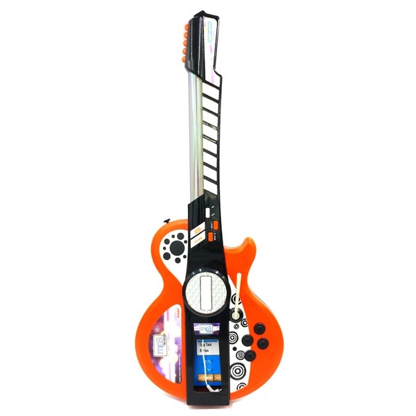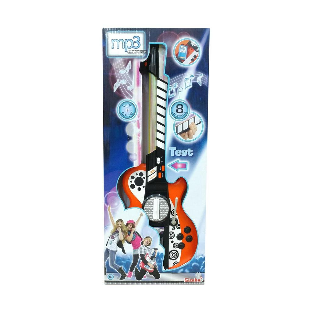Đồ Chơi Guitar My Music World 106838628 Sản phẩm là một món đồ chơi dành riêng cho các bé yêu thích âm nhạc. Sản phẩm có kèm dây đeo qua vai gắn vào thân đàn có thể điều chỉnh được. Sản phẩm có thể kết nối với máy nghe nhạc MP3 để bé có thể chơi các bài hát yêu thích của mình. Tay cầm có 8 nút âm thanh và phát sáng khi được bấm. Sản phẩm có công tắc bật/tắt, điều chỉnh âm lượng và hiệu ứng ánh sáng vô cùng tuyệt vời.