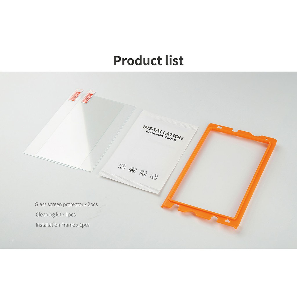 Bộ sản phẩm bao gồm: 2x Glass Screen Protector, 1x Easy Install frame,1x Cleaning kit