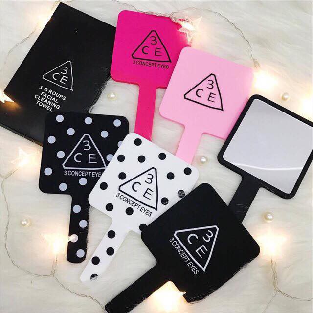 🎀 GƯƠNG CẦM TAY 3CE siêu xinh xắn➖Gương cầm tay là vật bất ly thân không thể thiếu của các cô nàng hay trang điểm, thiết kế sang chảnh, cấu tạo gương bền, mặt gương trong, nhỏ gọn tiện lợi cho các nàng mang theo bên mình làm đẹp nha.