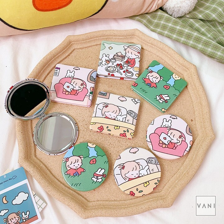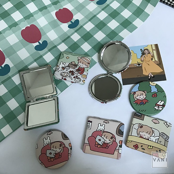 Giới thiệu Gương Cầm Tay Mini Gấp Gọn Hình Vuông Hình Tròn Kiểu Chibi Siêu Đáng Yêu - Vani Store