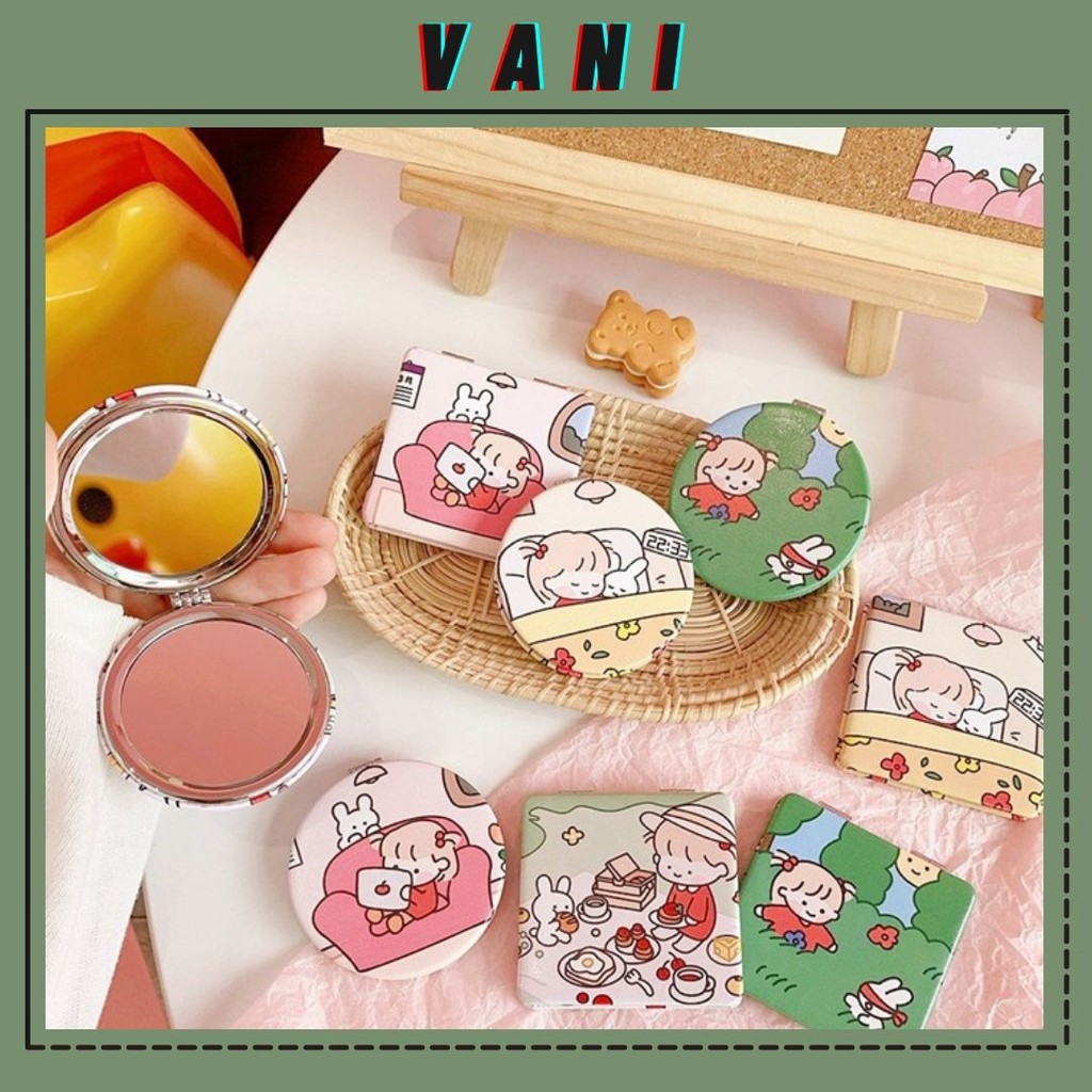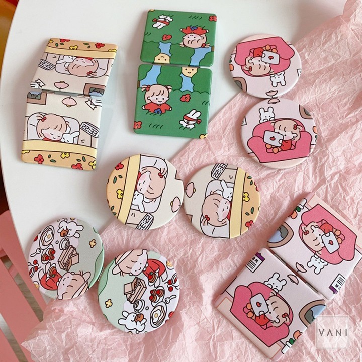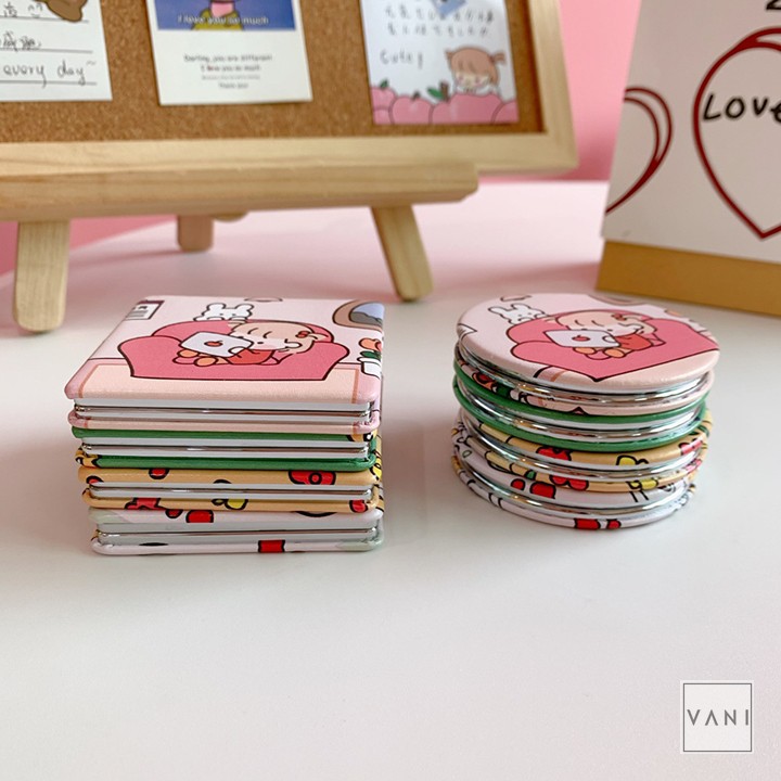 Gương Cầm Tay Mini Gấp Gọn Hình Vuông Hình Tròn Kiểu Chibi Siêu Đáng Yêu - Vani Store