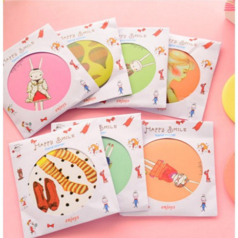 Gương nhỏ đường kính 7cm , tiện lợi khi sử dụng,dễ dàng bỏ túi mang theo khi đi ra ngoài.Trên gương có in những hình ảnh dễ thương trẻ trung ngộ nghĩnh đáng yêu mang phong cách Hàn Quốc.