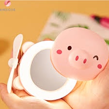 Gương cầm tay có đèn led kèm quạt mini fan kiểu dáng ngộ nghĩnh:Trong chiếc giỏ xách hằng ngày của các chị em, mỹ phẩm là điều tất yếu và gương cầm tay có đèn led kèm quạt cũng là một trong những dụng cụ không thể thiếu. Gương đèn led có quạt tích hợp 3 trong 1 sẽ vô cùng tiện lợi khi bạn ra đường. Gương kèm đèn led giúp bạn trang điểm dễ dàng hơn, dù là đang ở nơi thiếu sáng, quạt mini quạt mát cho bạn sự dễ chịu trước thời tiết oi bức, nóng nực.