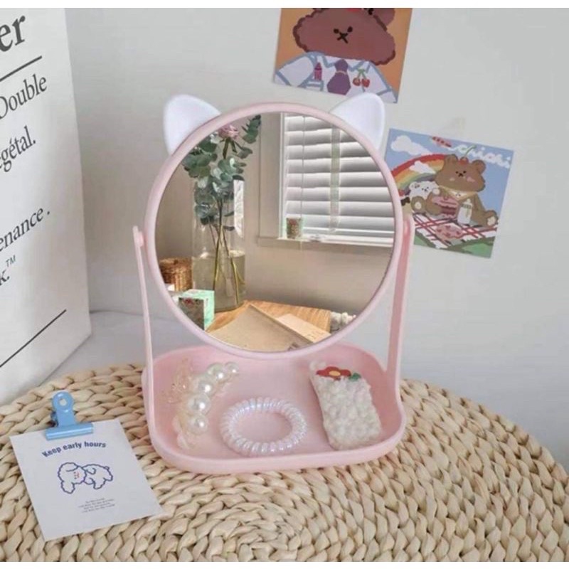 Gương công chúa tai mèo và tai thỏ để bàn xoay 360 độ siêu đẹp