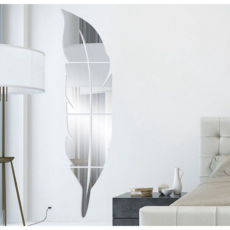 GƯƠNG DÁN TƯỜNG HÌNH LÁ - KÍNH DÁN TƯỜNG LẬP THỂ 3D LẮP GHÉP HÌNH LÔNG VŨ