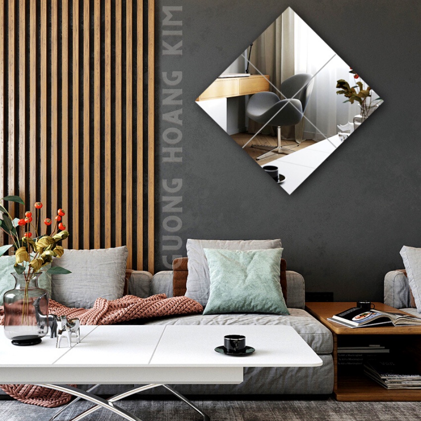 - Gương ghép dán tường có thể dùng để Decor, trang trí ở bàn ăn, phòng khách, phòng ngủ.