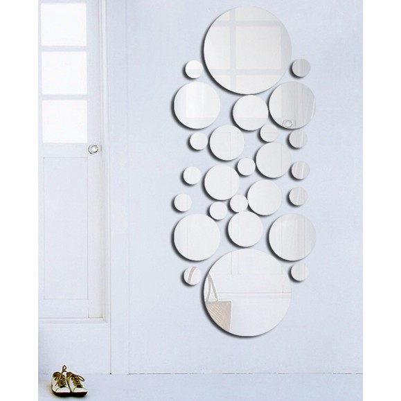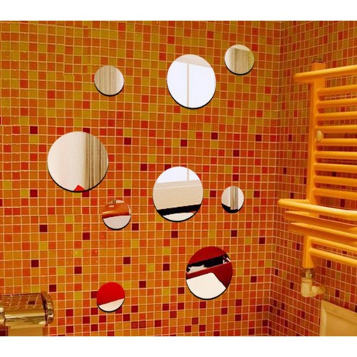 Bộ gương tròn dán tường với nhiều kích thước có thể dán trên nhiều bề mặt như tường, gạch men, kính, gỗ, kim loại.Tấm gương màu sáng bạc, nhẹ dễ lắp đặt không cần khoan treo, độ dày 1mm.