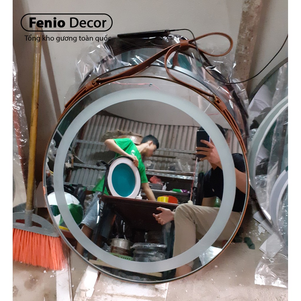 Nhà cửa & Đời sống > Trang trí nhà cửa > Gương || Gương dây da có đèn led treo tường Gương led cảm ứng hình tròn treo trang điểm decor phòng ngủ, phòng kháchCòn hàng