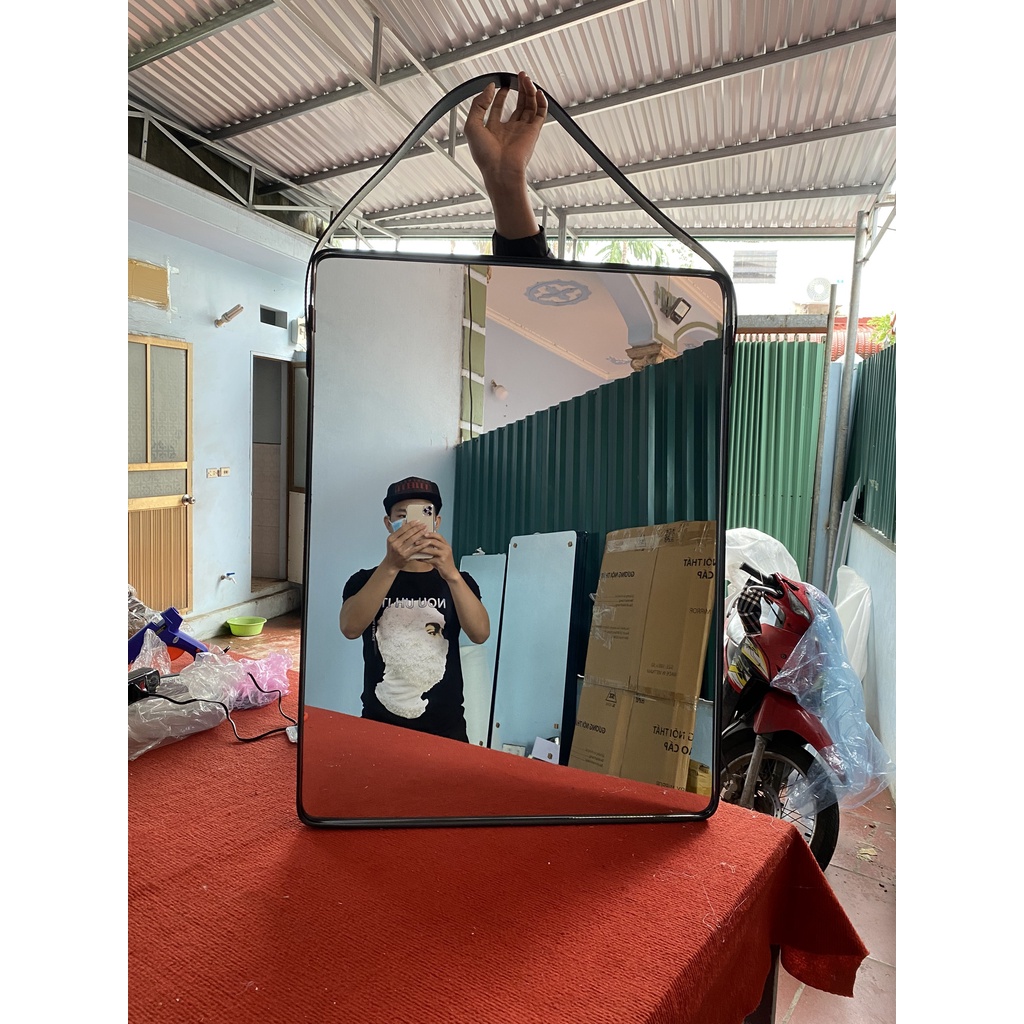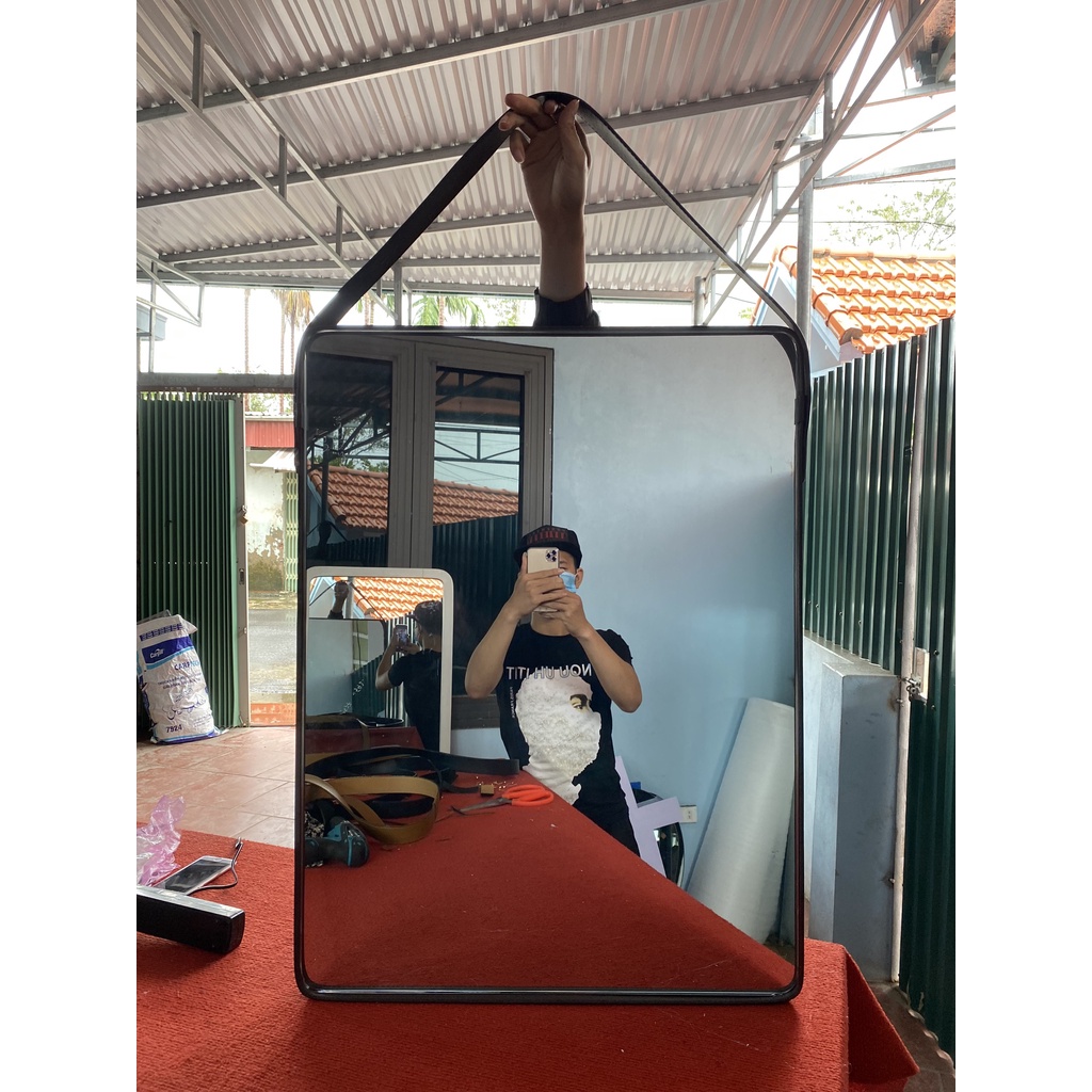 Nhà cửa & Đời sống > Trang trí nhà cửa > Gương || Gương dây da có quai treo(4 màu trắng,đen,nâu,vàng bò).Còn hàng