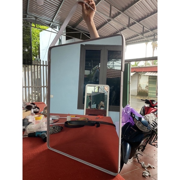 Nhà cửa & Đời sống > Trang trí nhà cửa > Gương || Gương dây da treo tường trang trí,nhà tắm(4 màu nâu,trắng,đen,vàng bò).Còn hàng