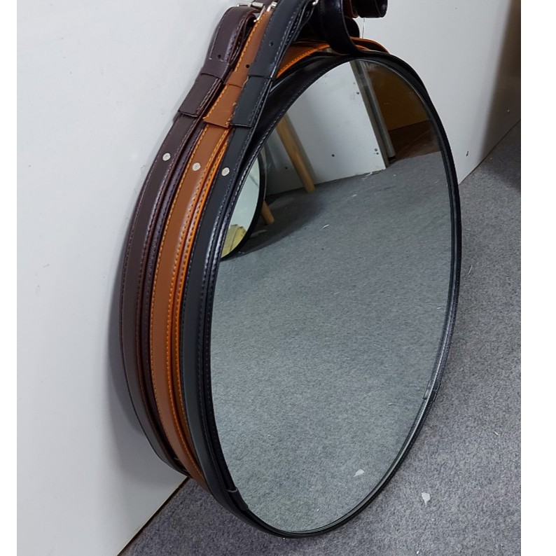 Gương dây da tròn treo tường cao cấp, đường kính 50cm, đầy đủ phụ kiện treo tường