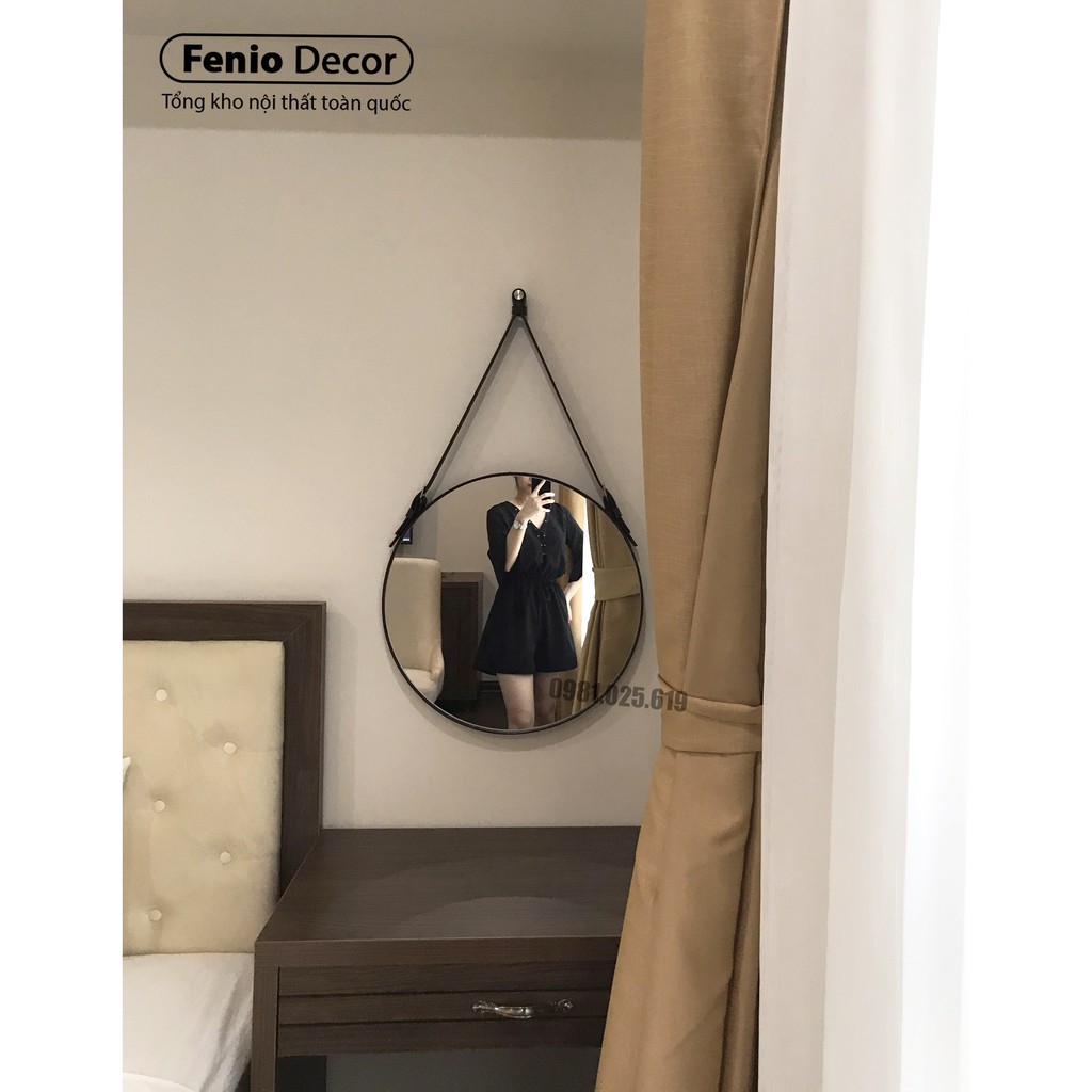 Nhà cửa & Đời sống > Trang trí nhà cửa > Gương || Gương dây da tròn treo tường cao cấp, đường kính 50cm, đầy đủ phụ kiện treo tườngCòn hàng