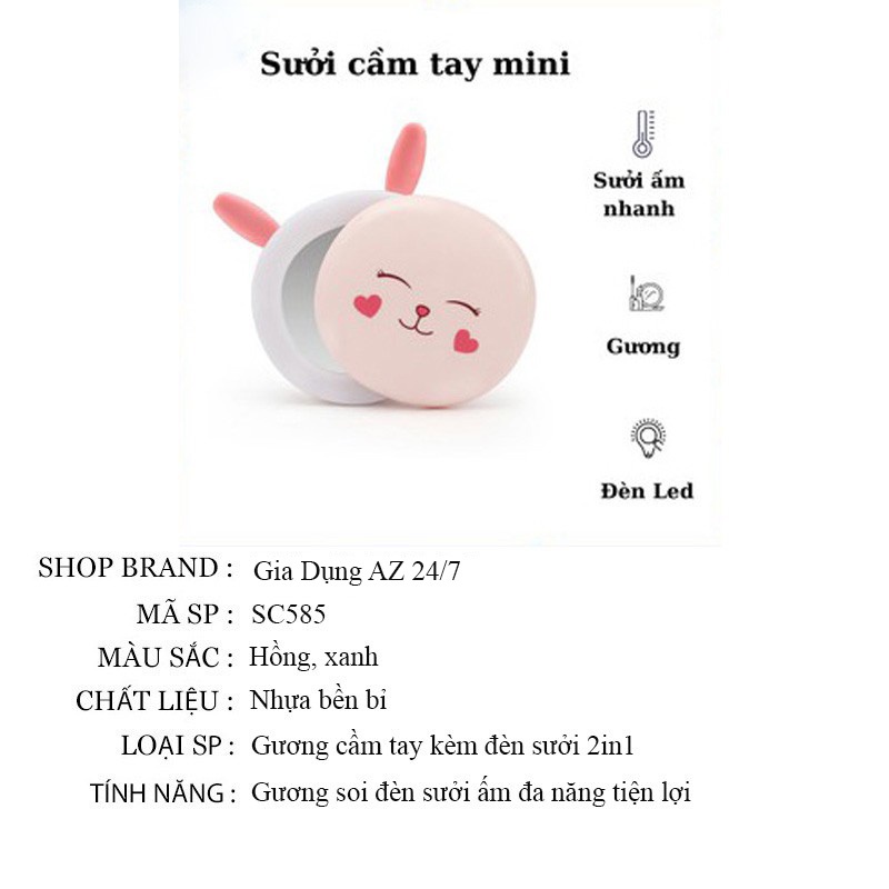 Gương để bàn cầm tay mini di động đèn led tích hợp sưởi ấm tay AZ SC585