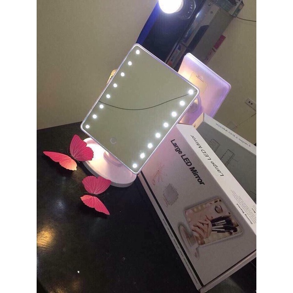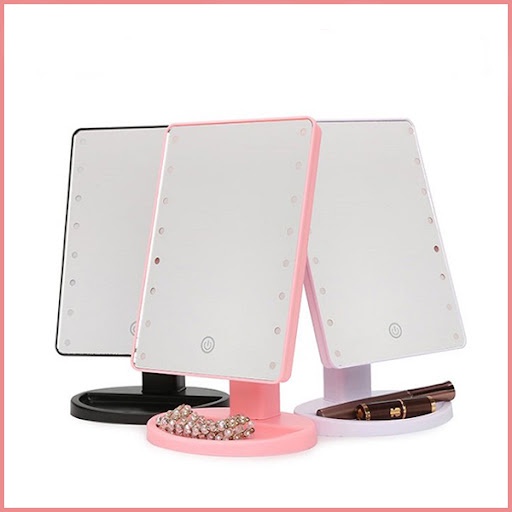 GƯƠNG ĐỂ BÀN CÓ ĐÈN LEDGương trang để bàn có đèn led không giống như những chiếc gương bình thường mà nó có thể chiếu sáng trong bóng tối nhờ được gắn đèn LED, giúp bạn thấy rõ từng nét trên khuôn mặt trong điều kiện tối tăm nhất, từ đó trang điểm dễ dàng hơn ngay cả khi điều kiện ngoại cảnh không cho phép.