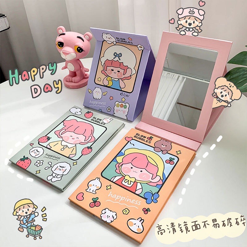GƯƠNG ĐỂ BÀN GẬP GỌN CHẤT LIỆU BÌA CỨNG MÀU SẮC DỄ THƯƠNG