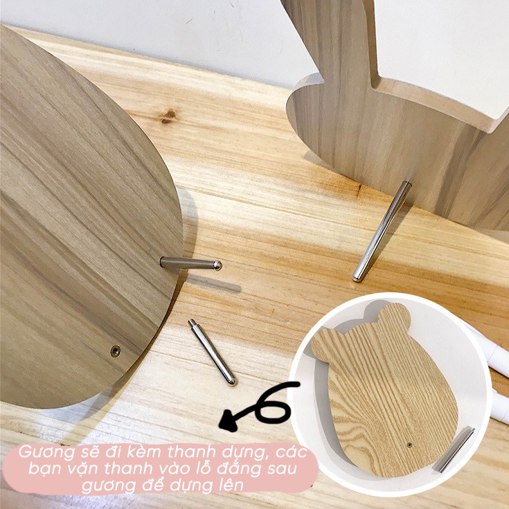 Gương Để Bàn Gỗ Hình Gấu và Thỏ Decor Trang Trí Xinh Xắn