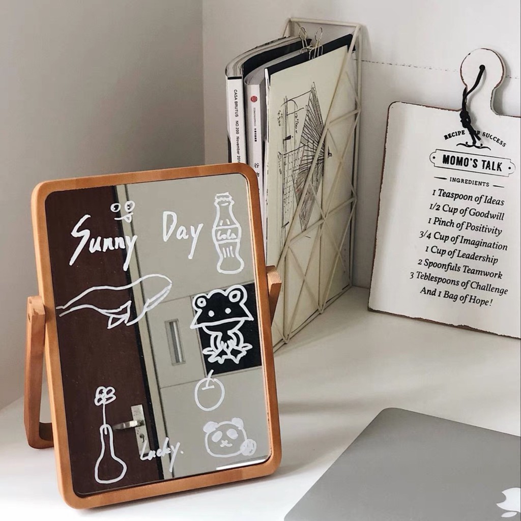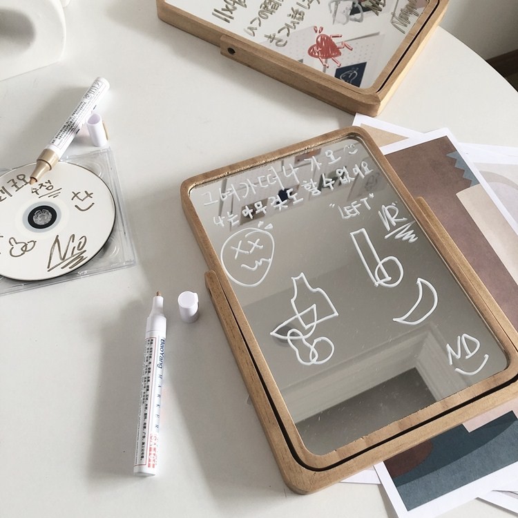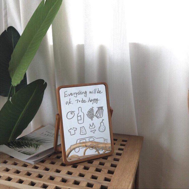 Hôm trước Tiệm có đăng hình gương trái tim kiểu công chúa phù hợp với các bạn nữ dịu dàng thì hôm nay Tiệm về gương khung gỗ phong cách minimalist, phù hợp cho cả nam lẫn nữ, dùng để bàn để make up, soi gương, hoặc trang trí phòng ngủ theo kiểu Bắc Âu/Hàn Quốc tối giản. Gương có thể xoay trước sau 360 độ tùy ý. Các bạn có thể dùng bút viết lên kính để trang trí nữa ~
