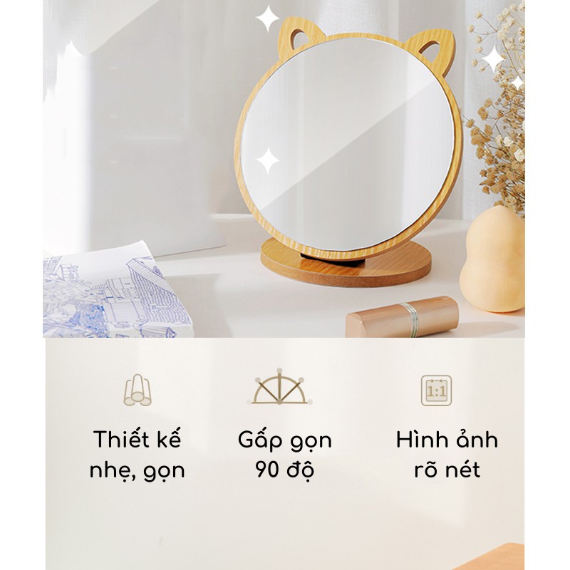Gương Để Bàn, Gương Gỗ Trang Điểm Tai Mèo COCA T