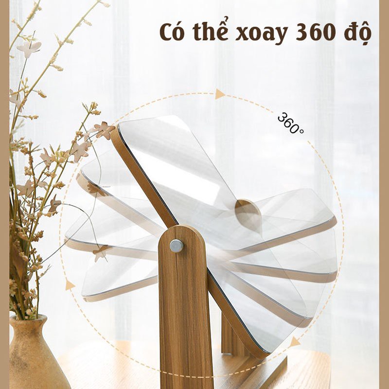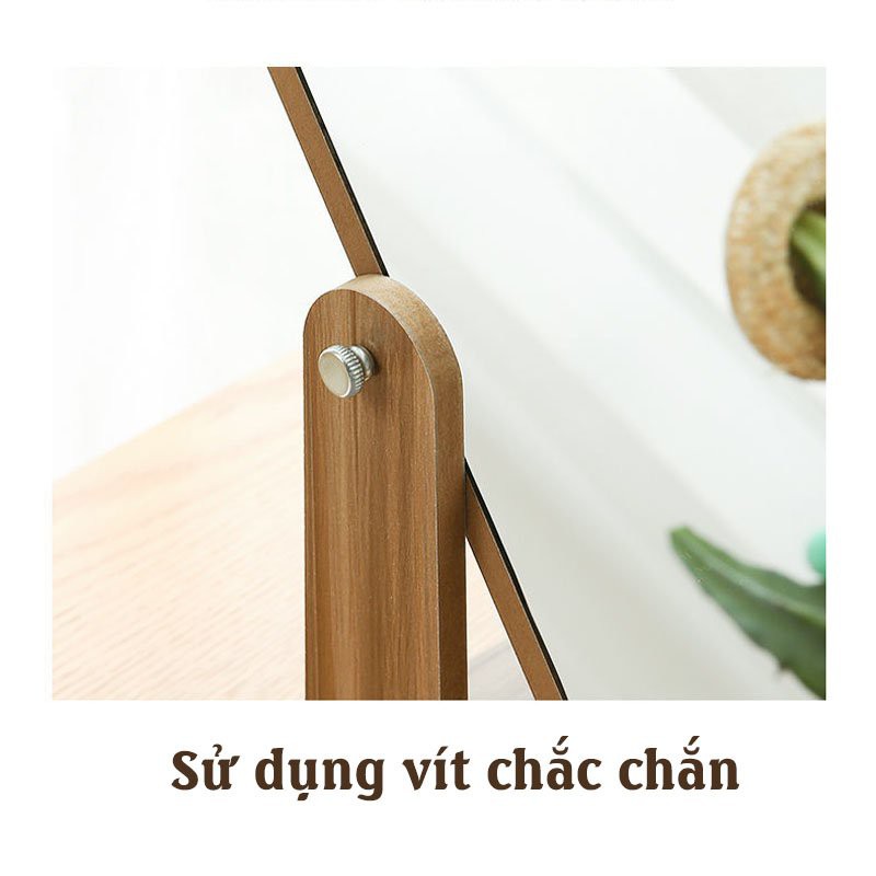 Gương Để Bàn, Gương Mini Trang Điểm Bằng Gỗ Decor Phong Cách Hàn Quốc