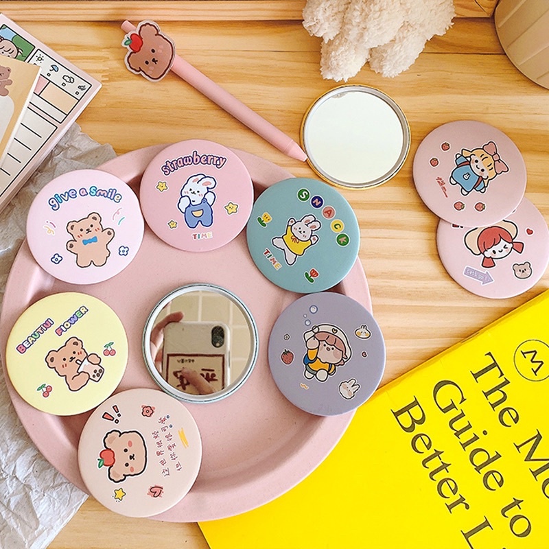 Gương để bàn trang điểm/gương mini 2 mặt Hàn Quốc Vintage lúa mạch 2 mặt gương xoay 360 độ