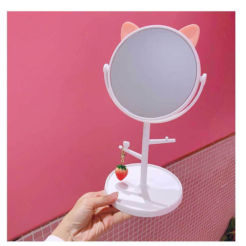 Gương tai mèo để bàn tiện lợi cho các chị em trang điểm , vừa xinh với khuôn mặt, gương có các móc và đế gương để treo những đồ nhỏ nhắn, xinh xắn không lo bị rơi mất: khuyên tai, nhẫn, vòng...