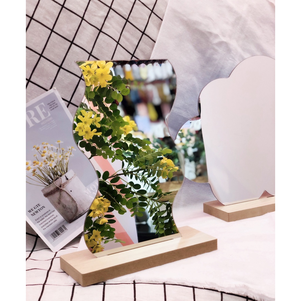 Gương Để Bàn Hoạ Tiết Mỏng ERASHOP 078612 - Phong Cách Vintage, Có Đế Đứng Gỗ Cứng Cáp, Siêu Rẻ Đẹp