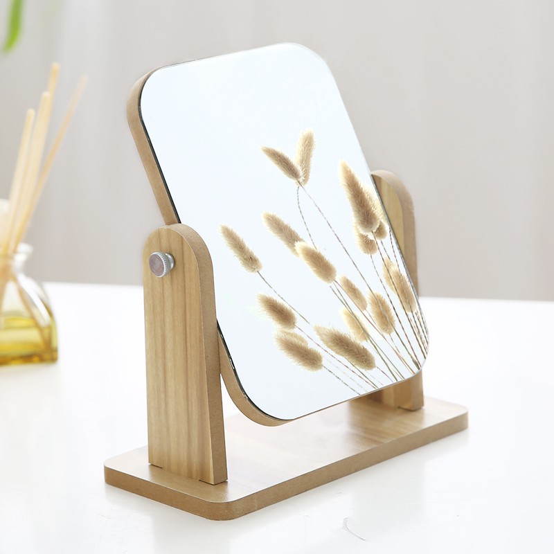 Gương để bàn khung gỗ chữ nhật, xoay 360, thanh lịch hiện đại.