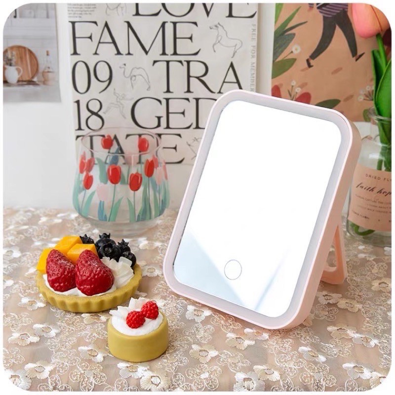 HOT TICKTOK GƯƠNG TRANG ĐIỂM CÓ ĐÈN LED MẪU MỚI TÍCH ĐIỆN KHÔNG CẦN CẮM, CẢM ỨNG 1 CHẠM HÌNH CHỮ NHẬT 3 CHẾ ĐỘ SÁNGGiá GM