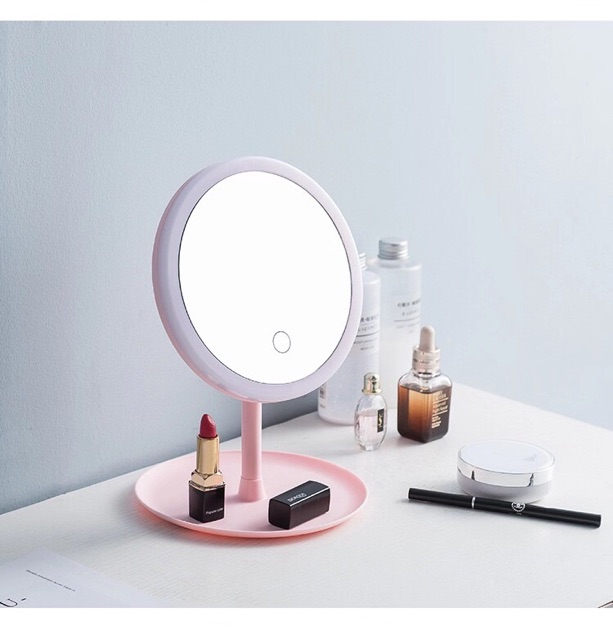 Gương để bàn trang điểm có nút cảm ứng 3 chế độ ánh sáng cao cấp kèm sạc
