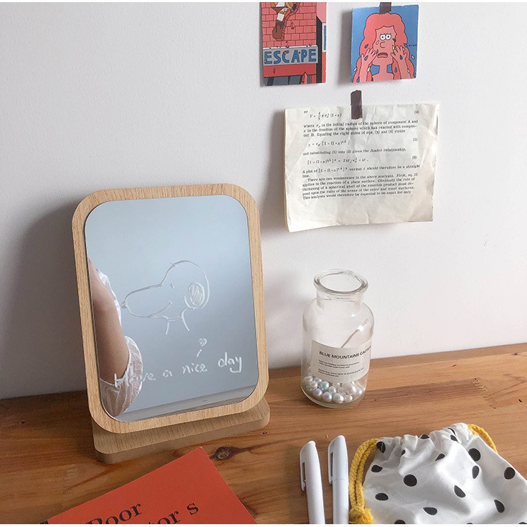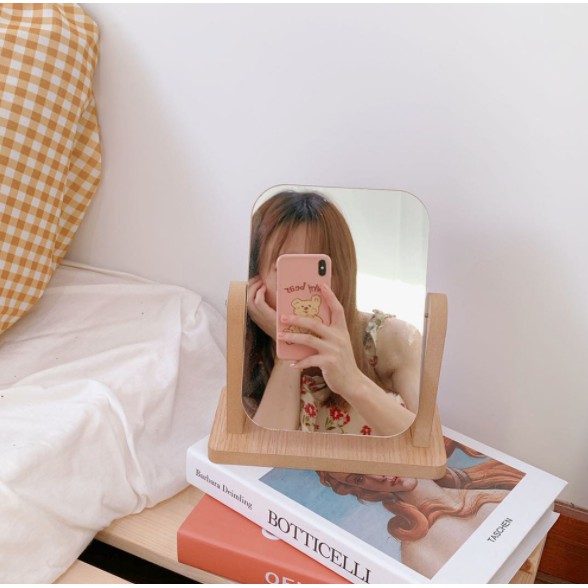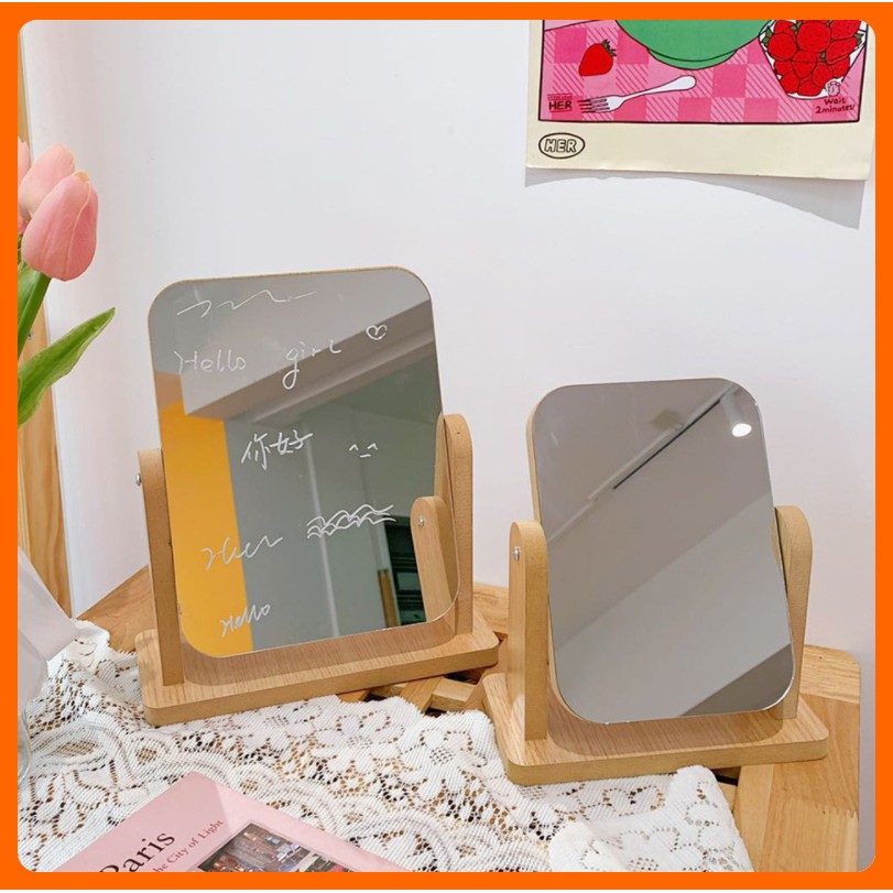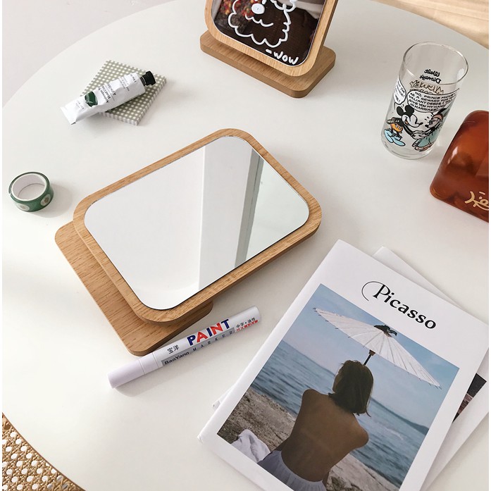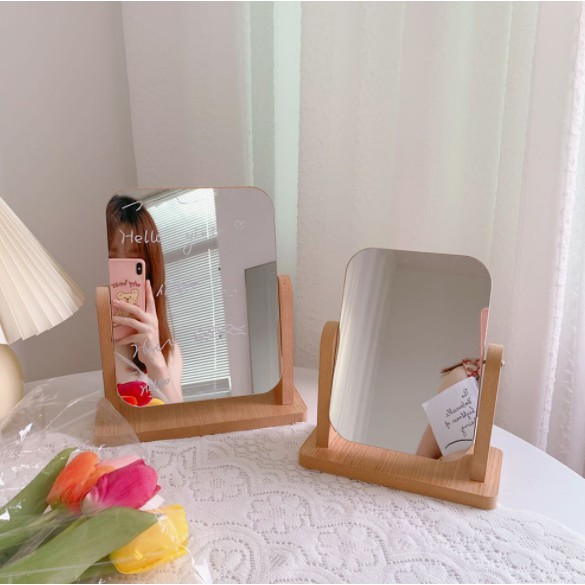 Gương Gỗ để bàn phong cách Hàn Quốc siu xinhMỗi cô nàng hiện đại chắc chắn sẽ không thể thiếu 1 chiếc gương gỗ để bàn nhỏ nhắn xinh xắn như này rùi đúng không ạ?^^