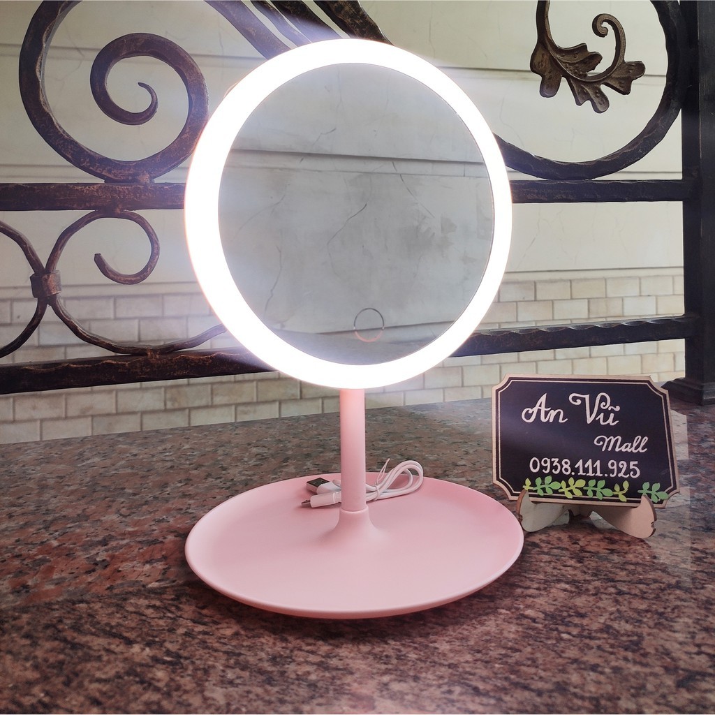 có đèn kèm sạc tiện dụng Gương để bàn co thể xoay điều chỉnh phát sáng có sạc tích điện