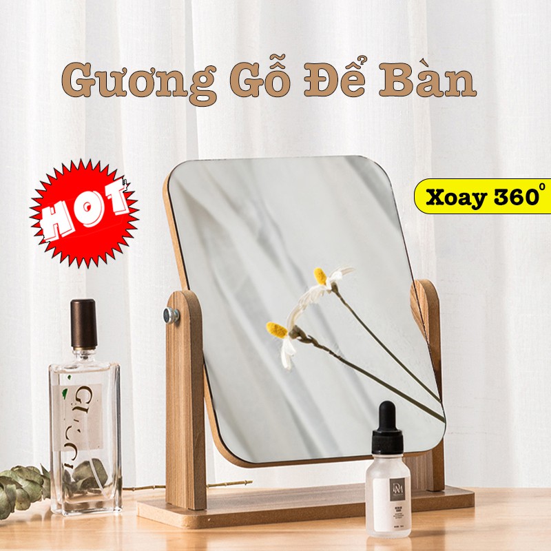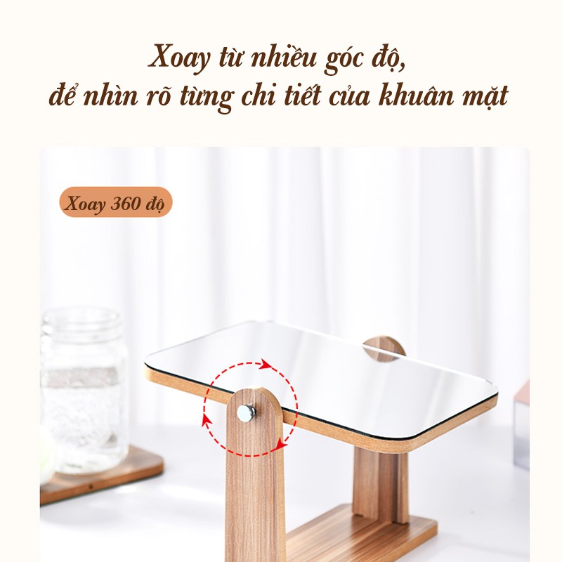 Gương Để Bàn Trang Điểm, Gương Gỗ Để Bàn Trang Trí Kiểu Hàn Sang Trọng LEON OFFICIAL