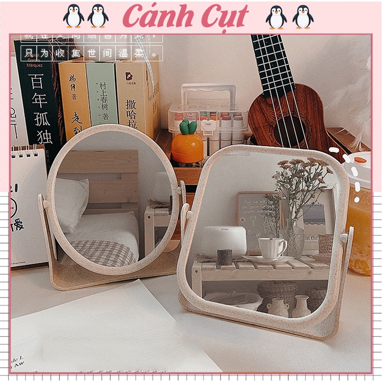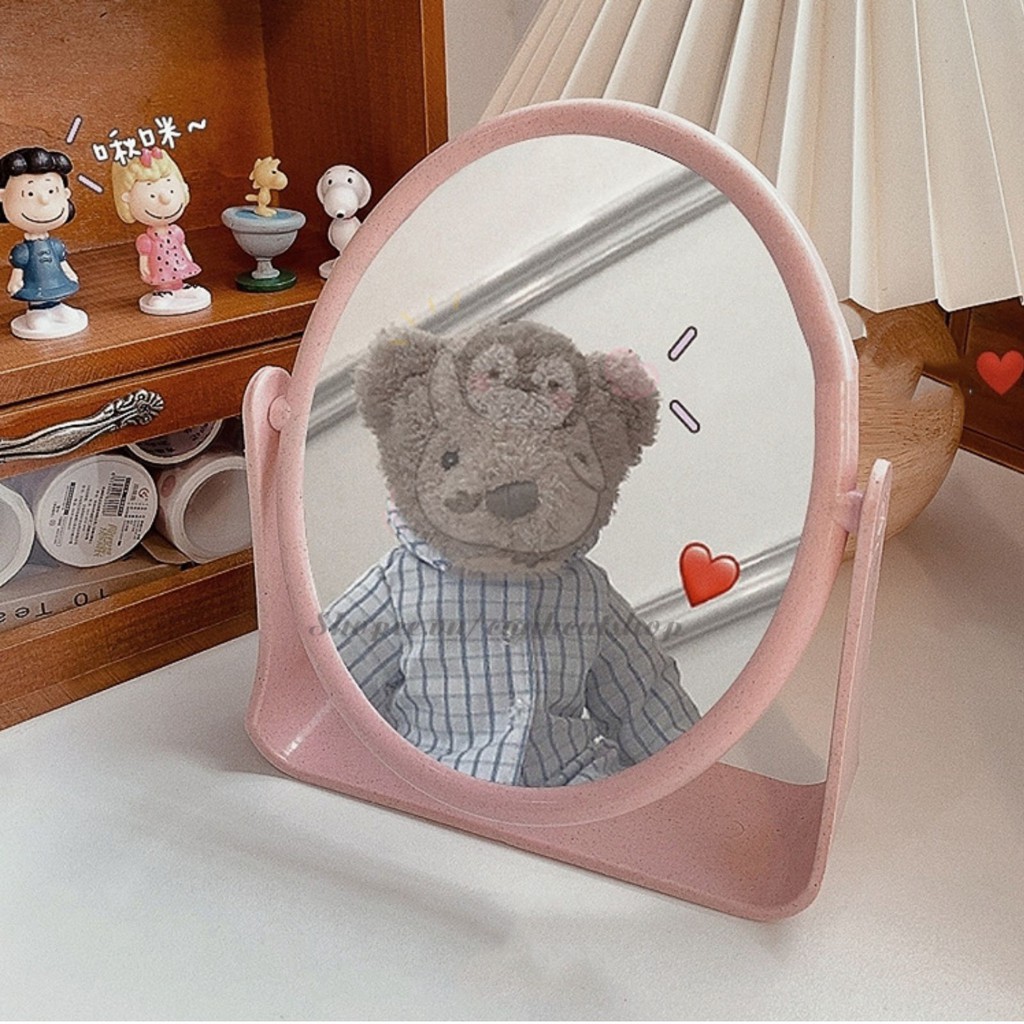 Gương để bàn trang điểm/gương mini 2 mặt Hàn Quốc Vintage lúa mạch 2 mặt gương xoay 360 độ